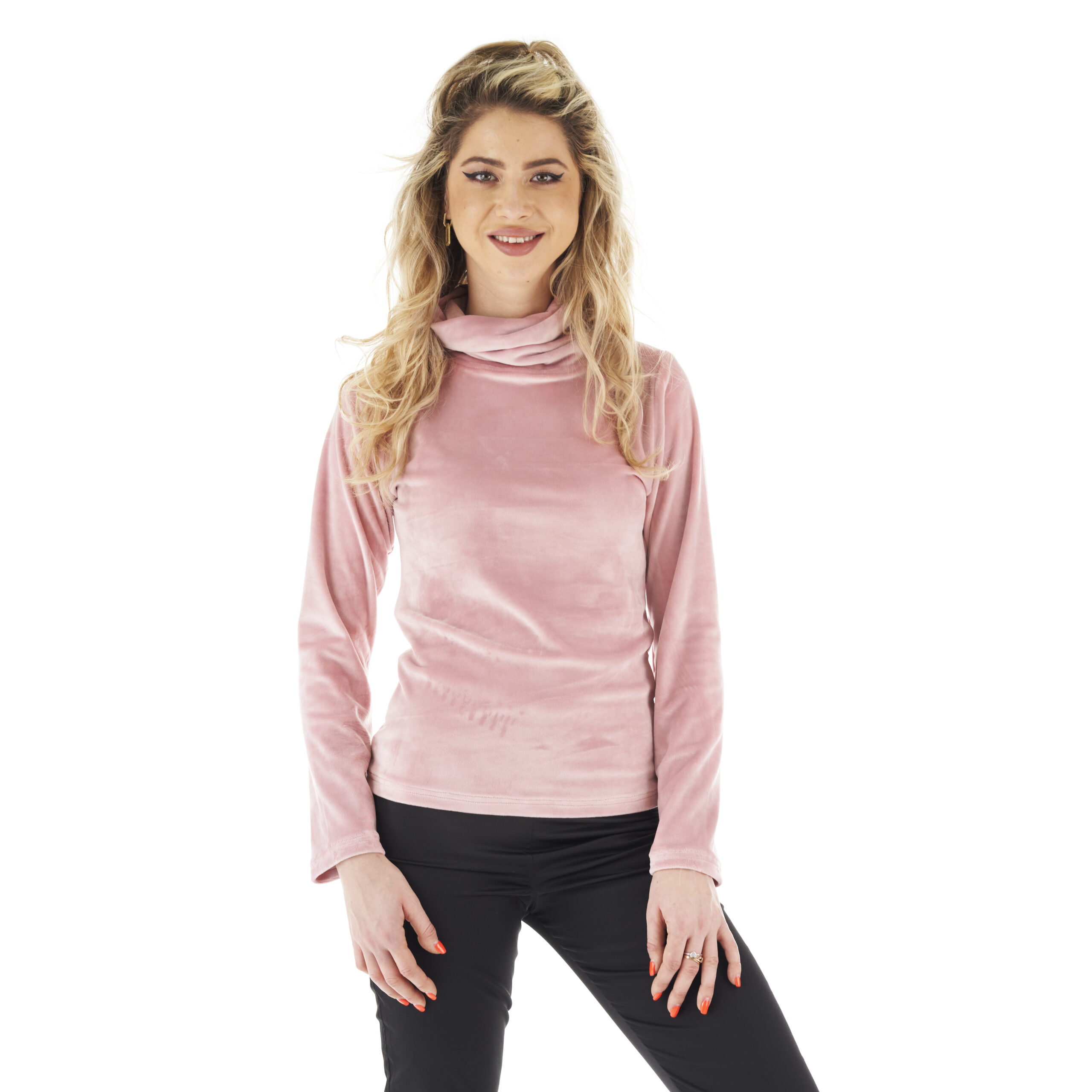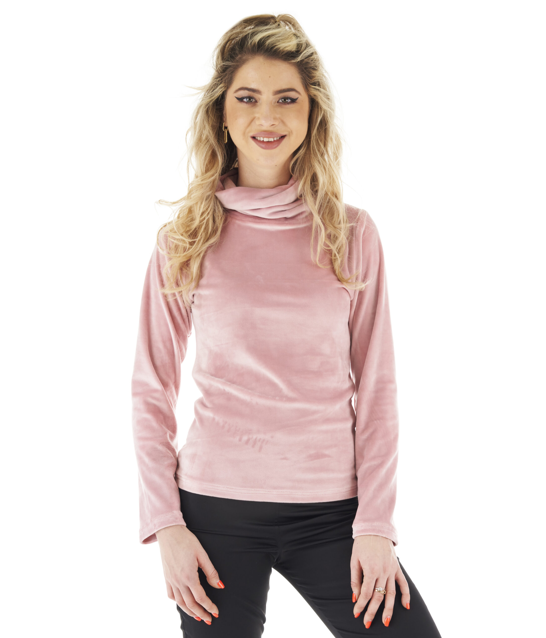 Pink velvet blouse. Fabric elastic. Long sleeve. Regular fit.