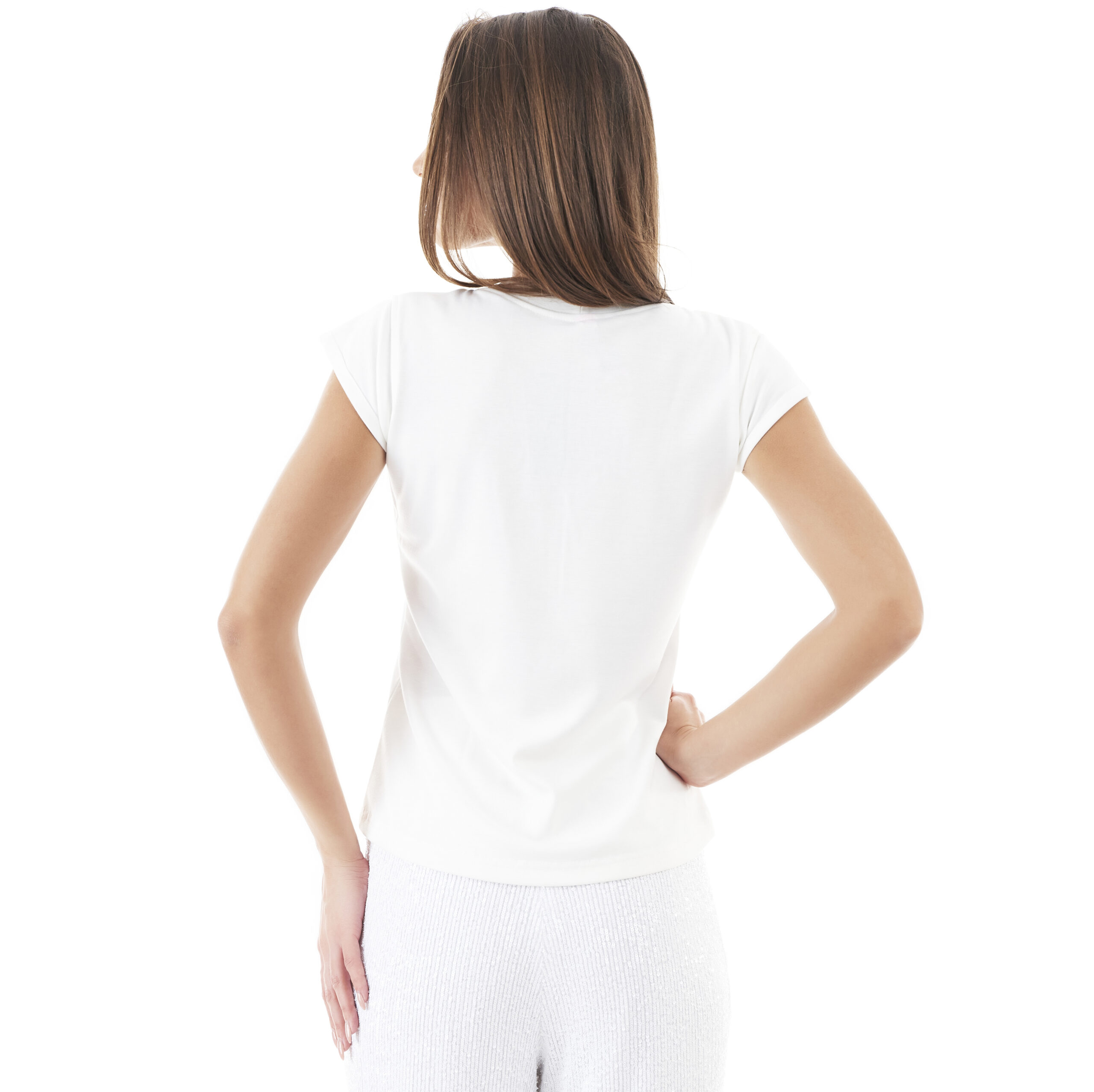 Tricou regular fit cu mânecă scurtă din bumbac elastic, moale. Guler rotund cu aplicații tip perle. Culoare: Alb. Compoziție: 92% Bumbac 8% Elastan. VEZI TABELUL DE MĂRIMI ÎNTREBĂRI-EMAIL