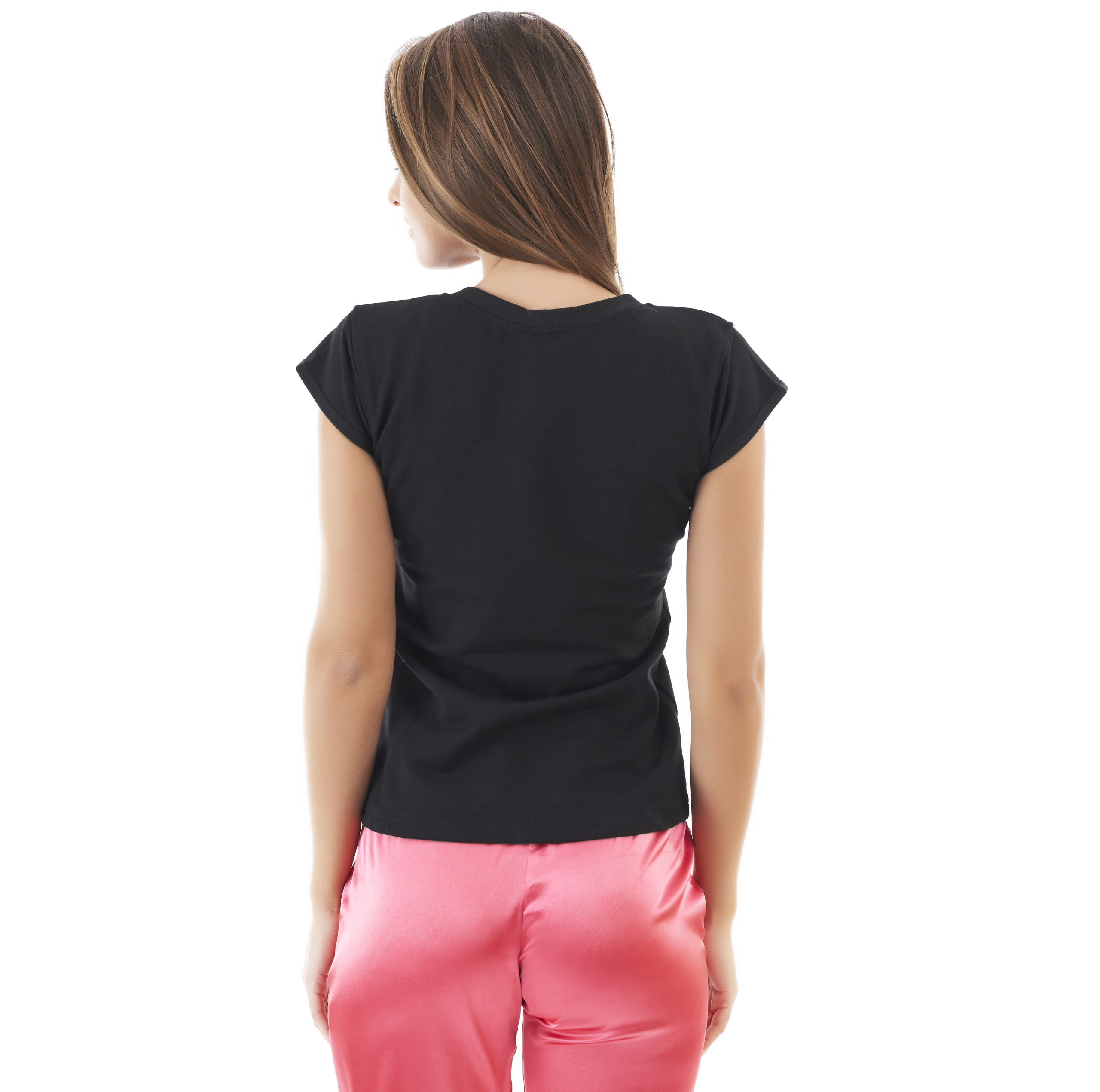 Tricou regular fit cu mânecă scurtă din bumbac elastic, moale. Guler rotund cu aplicații tip perle. Culoare: Negru. Compoziție: 92% Bumbac 8% Elastan. VEZI TABELUL DE MĂRIMI ÎNTREBĂRI-EMAIL