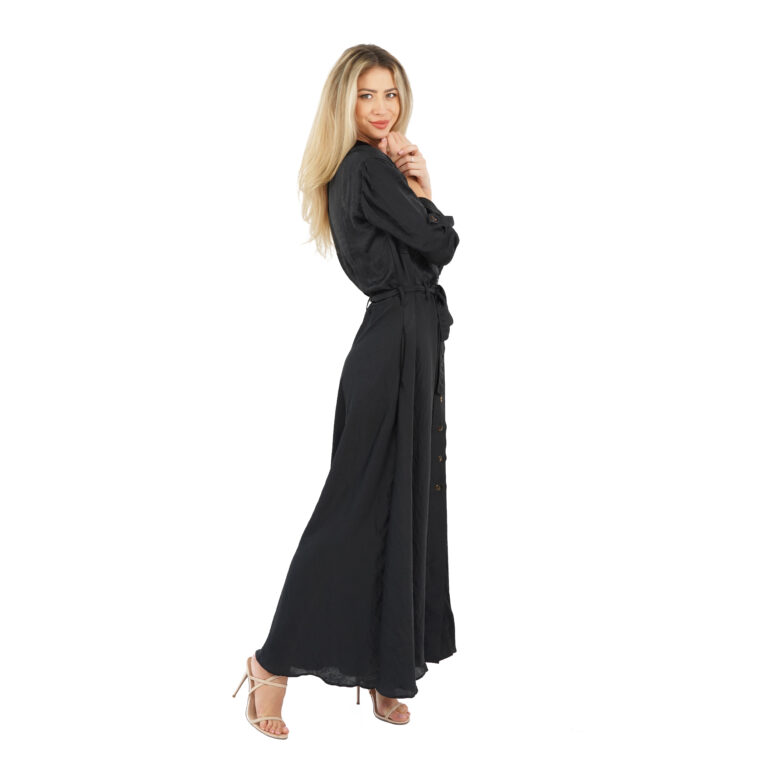 Rochie lungă cu nasturi și cordon neagră